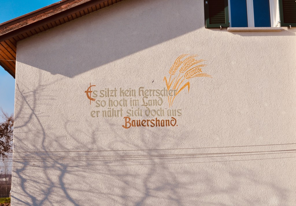 The German couplet above translates roughly as “The mightiest ruler throughout the land, yet is fed through farmer’s hand.”